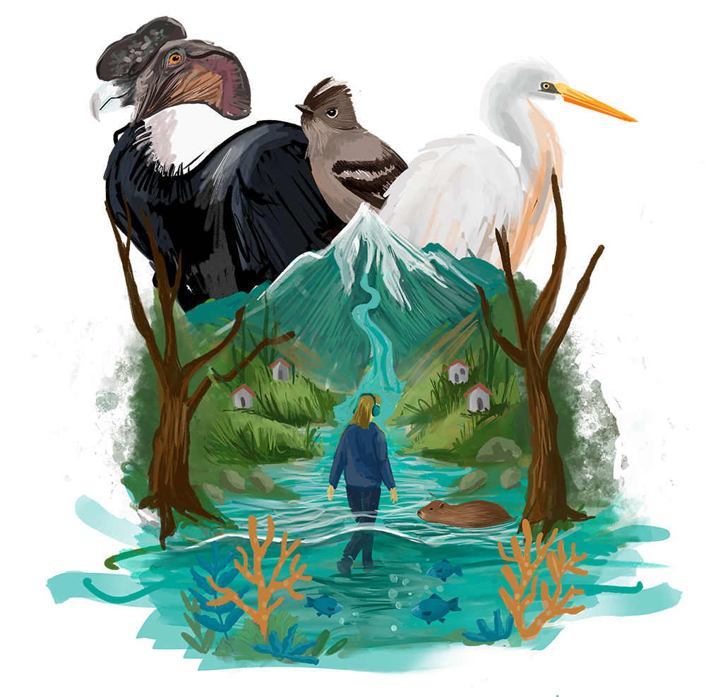 En este montaje, tres aves nativas, cóndor, garza y fiofío, guían un recorrido por instalaciones sensoriales e interactivas, realidad virtual, videomapping, etc para adentrarse en el ciclo hídrico y comprender la importancia vital del agua e impactos diversos y complejos de su intervención, transformación y crisis. Un proyecto que se concibe como necesidad para acercar el conocimiento a todas las personas ante retos colectivos. El agua es de uso cotidiano en múltiples dimensiones, también cada vez más escasa. En Chile y particularmente Biobío atraviesa una crítica situación, con déficit hídrico que afecta a comunidades en varios territorios y va empeorando por el cambio climático con eventos como sequías que hacen urgente cuidar al recurso y cada persona tiene que aportar.